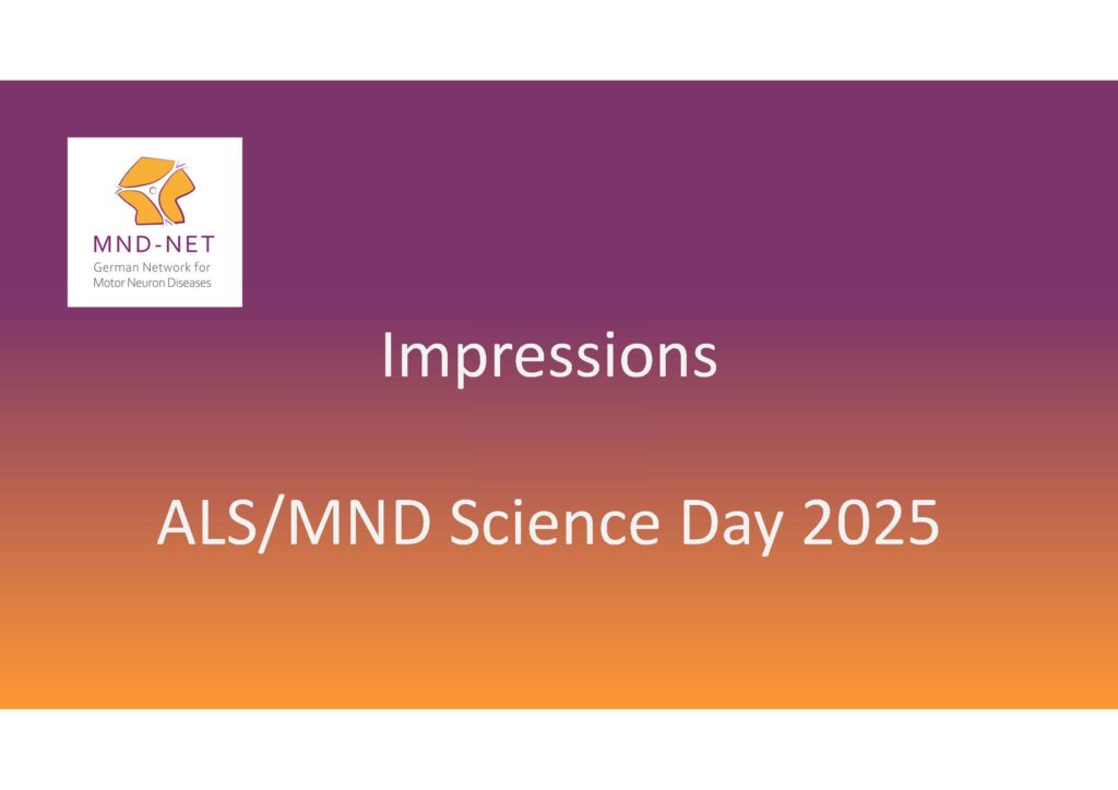 The annual Science Day of the German MND-NET took place – two days full of exciting research presentations on motor neuron diseases (ALS and SMA), from molecular genetics and biomarker discovery to the first publication of clinical study results or new etiological hypotheses on the influence of viral infections for MND.